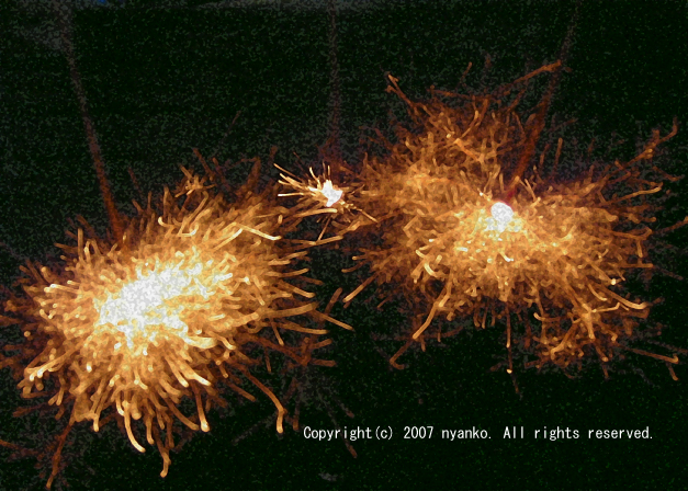 線香花火のま~るい光の球から放たれる小さな流れ星